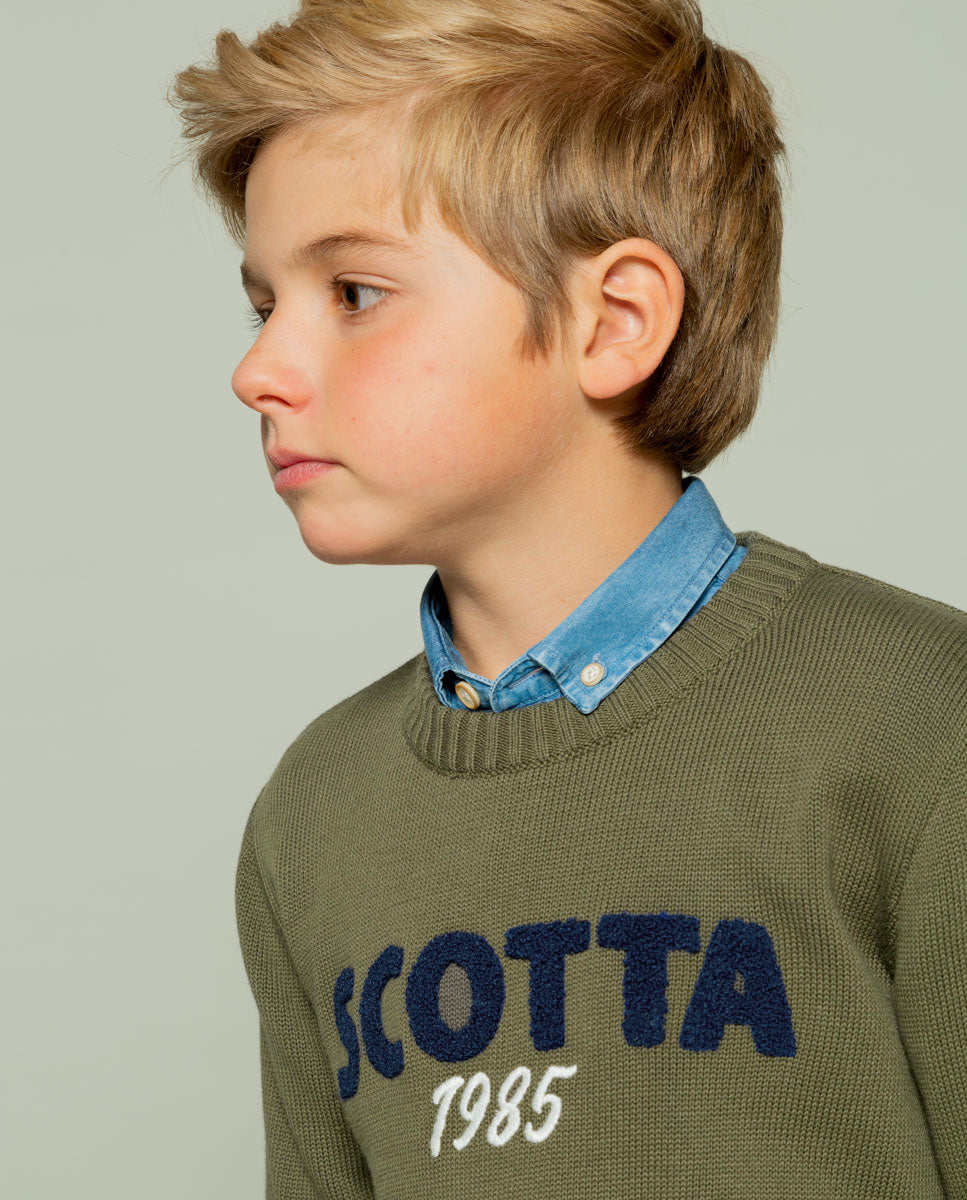 55,00 €Precio de oferta 33,00 €Jersey niño scotta khaki Jersey niño scotta marino -40% -