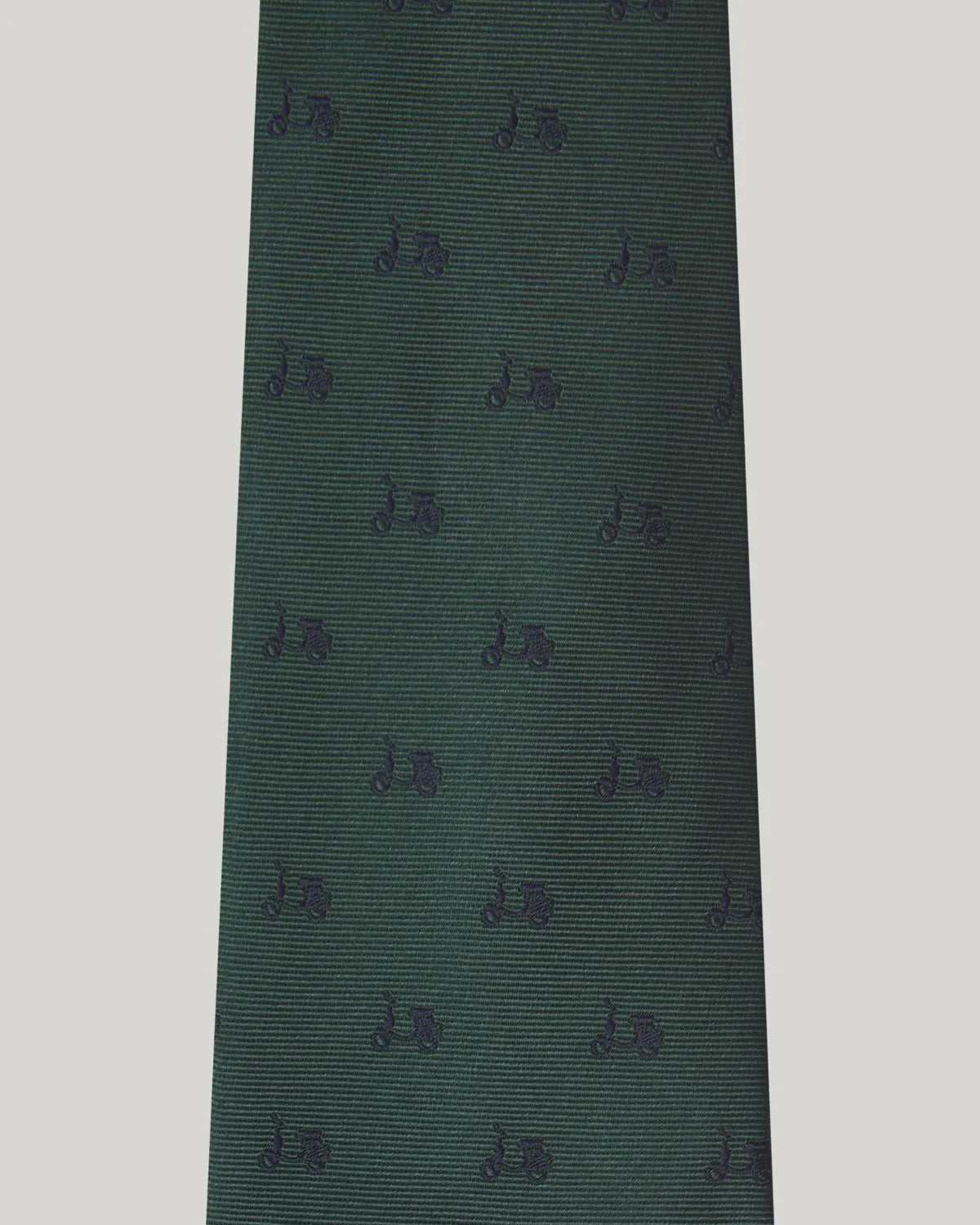 Corbata verde estampada confeccionada en tejido de seda. Forro interior personalizado. Pala de 7,5 cm.