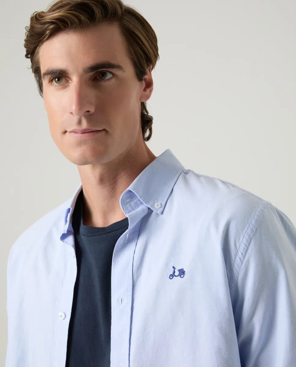 Jersey liso en beige, confeccionado en tejido de lana y poliamida, con corte regular fit. Diseño de cuello de media cremallera, manga larga y detalle de moto bordada en el torso. Aporta calidez y confort en días frescos, perfecto para días de invierno.