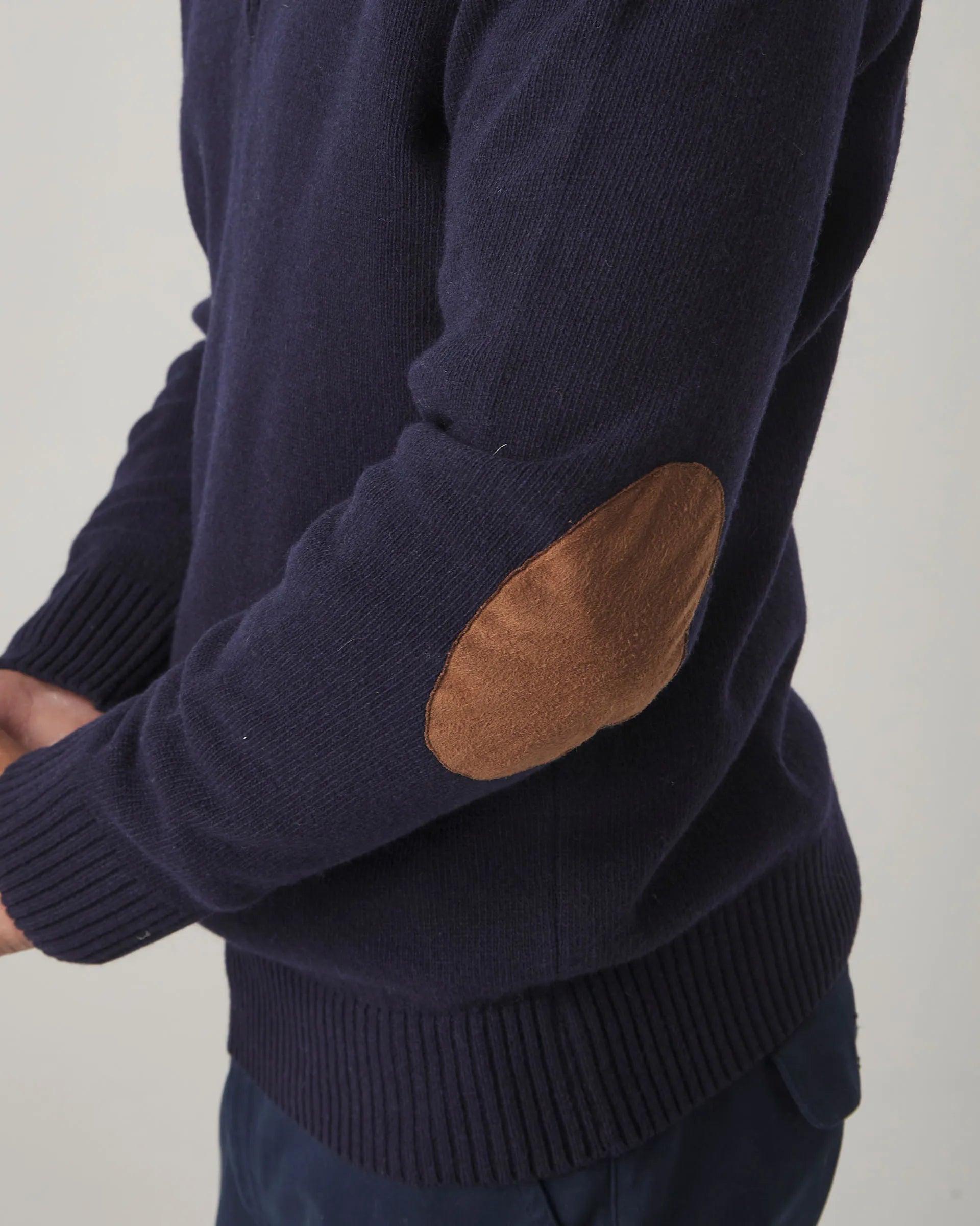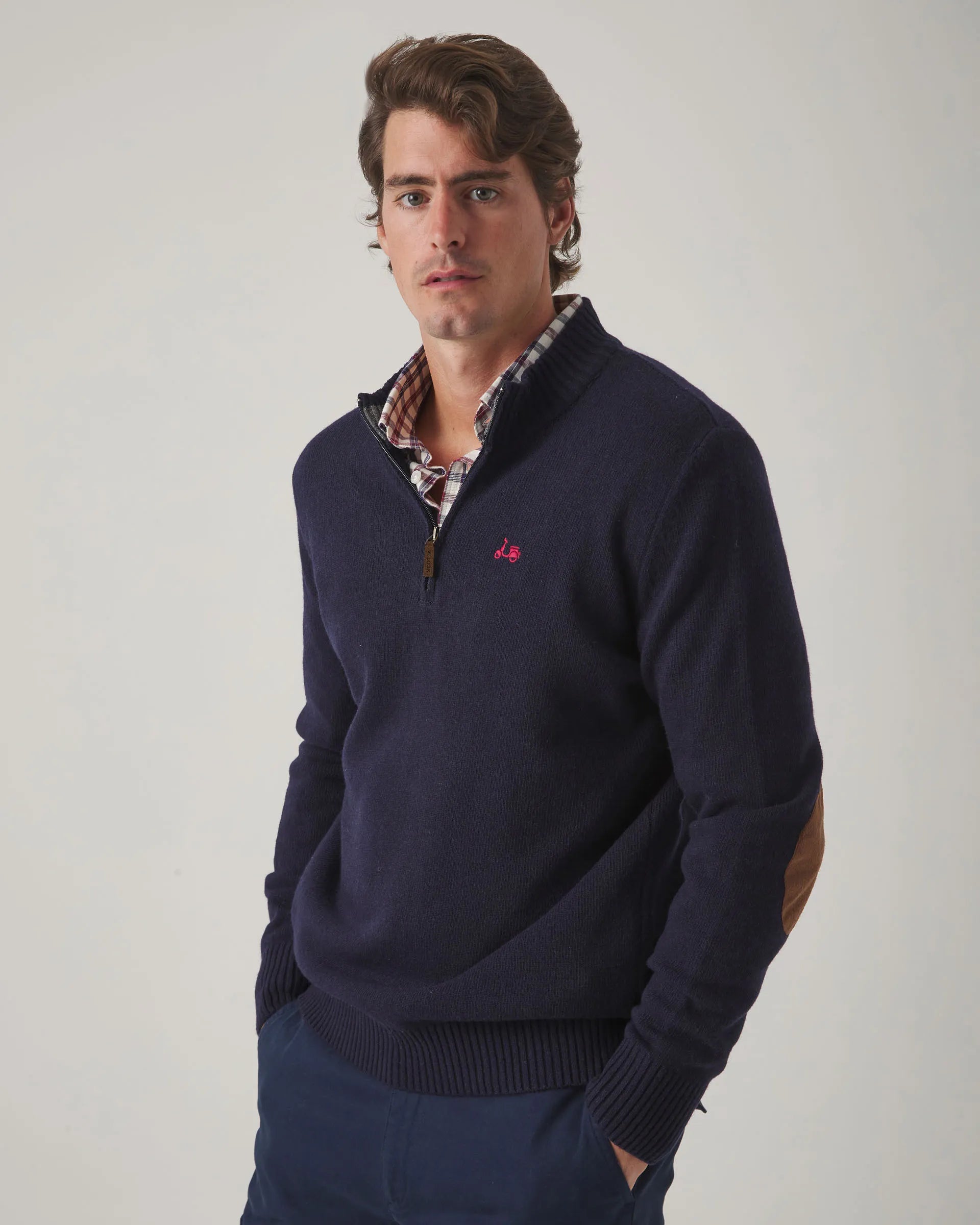 Jersey liso en azul marino, confeccionado en tejido de lana y poliamida, con corte regular fit. Diseño de cuello de media cremallera , manga larga y detalle de moto bordada en el torso. Aporta calidez y confort en días frescos, perfecto para días de invierno.