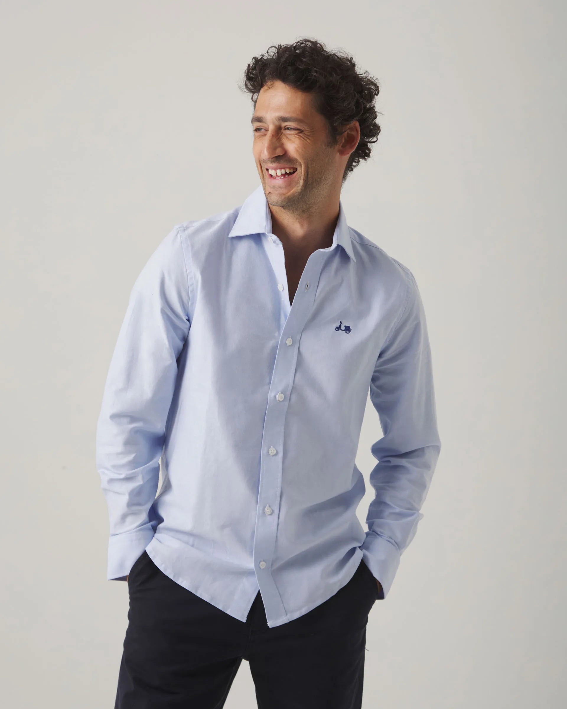 Colete acolchoado azul-marinho, de corte justo, fabricado em nylon com acabamento impermeável, proteção contra o vento e humidade ligeira. Gola alta e fecho frontal em zíper com puxador personalizado. Bolsos laterais e interiores com fecho. Pormenor de remendo de borracha no peito.