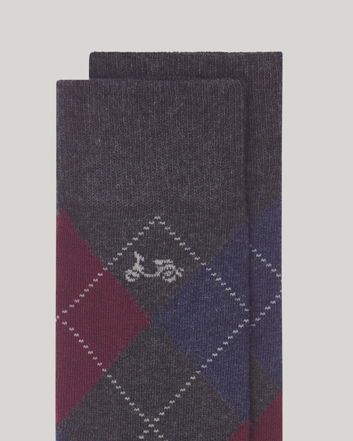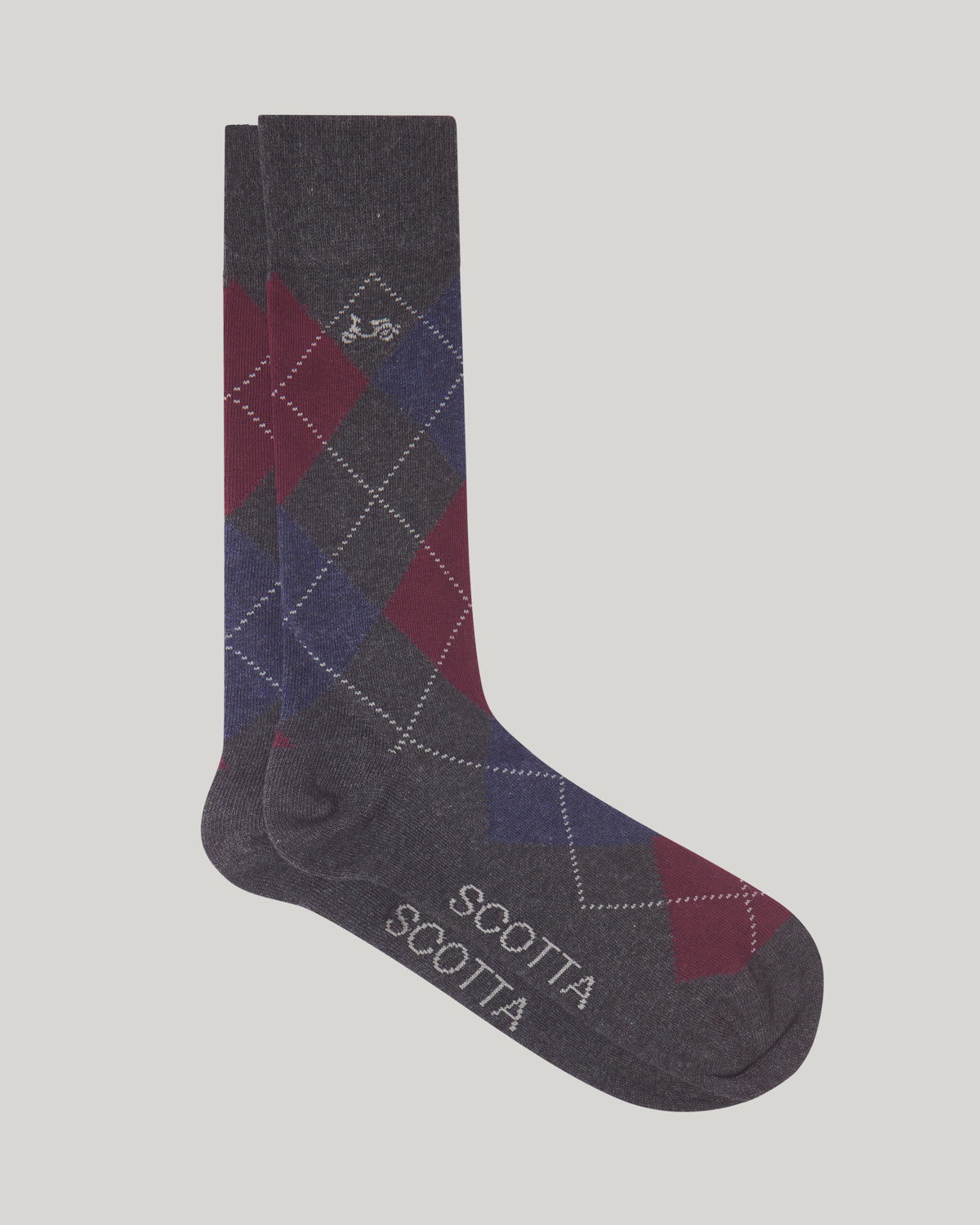 Meias de cano curto estampadas. Feitas de algodão até metade da barriga da perna. Detalhes contrastantes de moto e da marca SCOTTA.