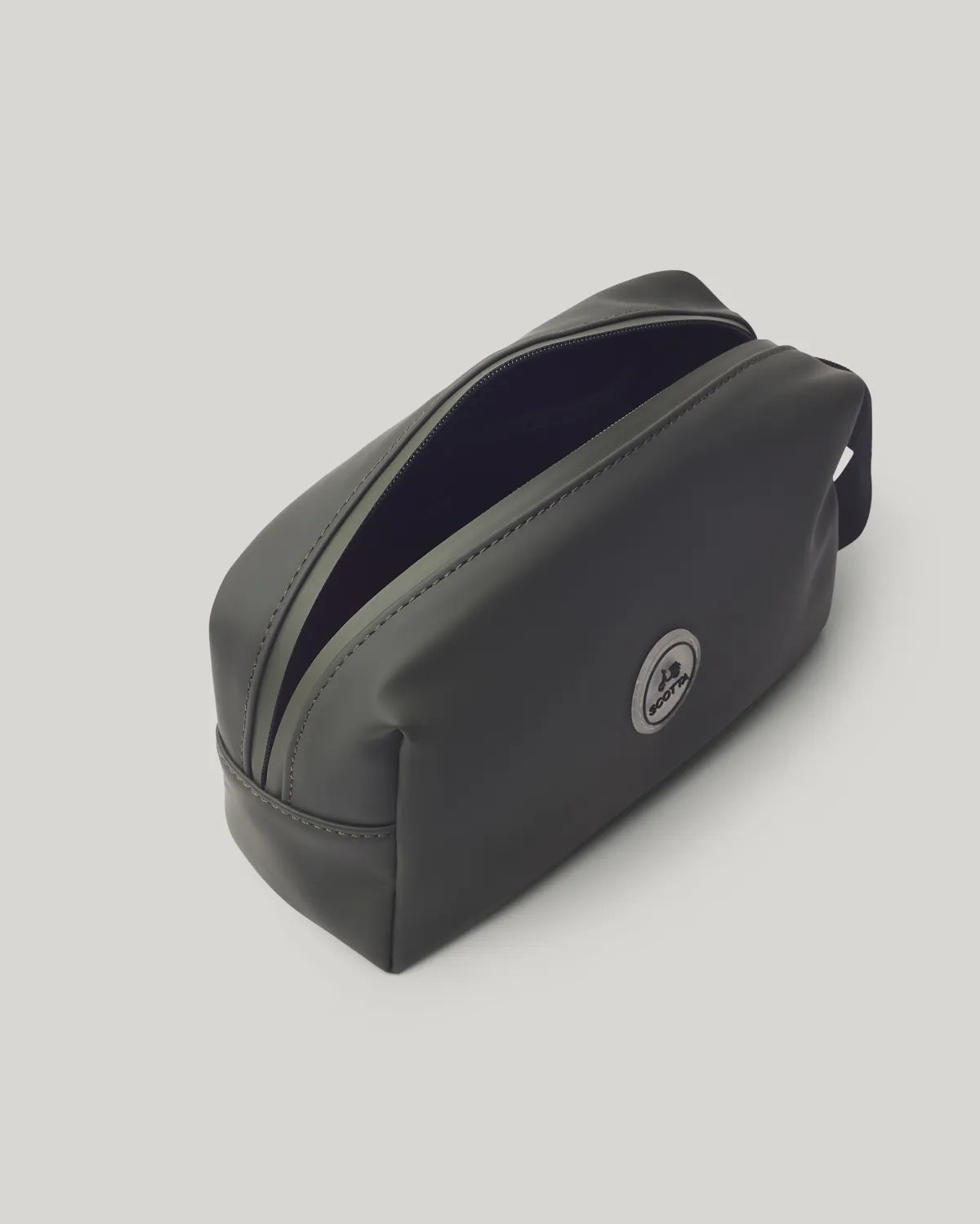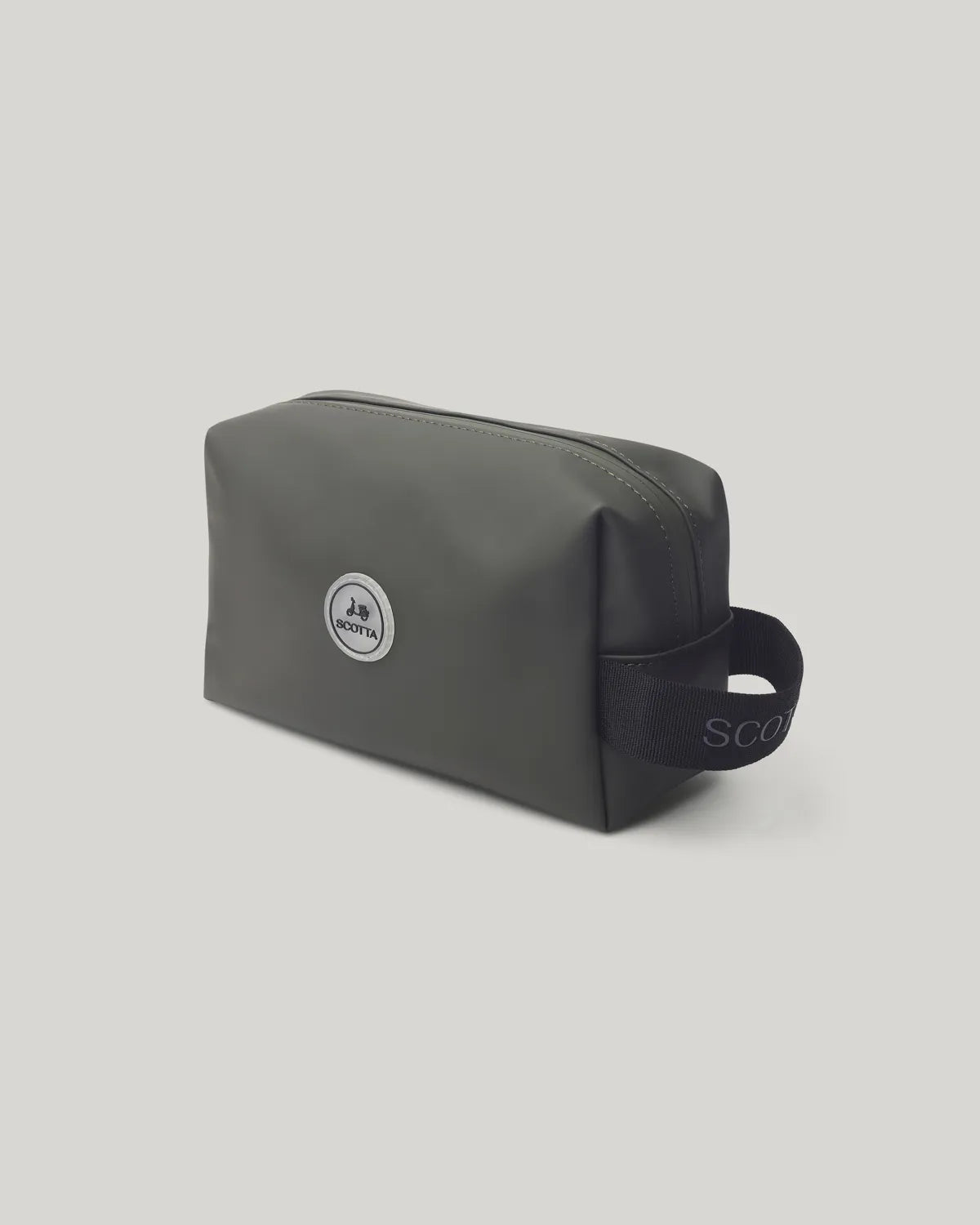 Neceser verde em tecido PU . Fecho de correr. Bolsos internos. Pega lateral.